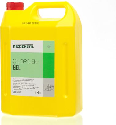 Καθαριστικό χλωρίου σε μορφή gel της εταιρείας Nicochem, που συμβάλλει στην αφαίρεση δύσκολων λεκέδων, στην απολύμανση και στην λεύκανση επιφανειών του μπάνιου, ενώ ταυτόχρονα τους χαρίζει ένα ευχάριστο άρωμα. Να φυλάσσεται μακριά από παιδιά. Πριν τη χρήση, συμβουλευτείτε πάντα τις οδηγίες χρήσης του κατασκευαστή στο πίσω μέρος της συσκευασίας. Όγκος: 4000ml